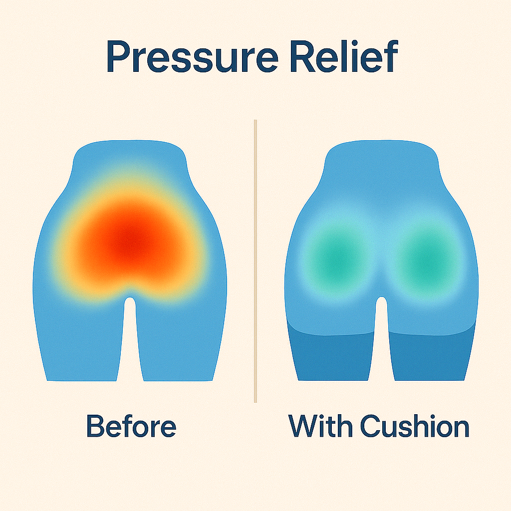 Yes, the ergonomic design specifically addresses tailbone pressure by redistributing weight away from sensitive areas. Many customers with tailbone pain, hip discomfort, and circulation issues report significant relief.