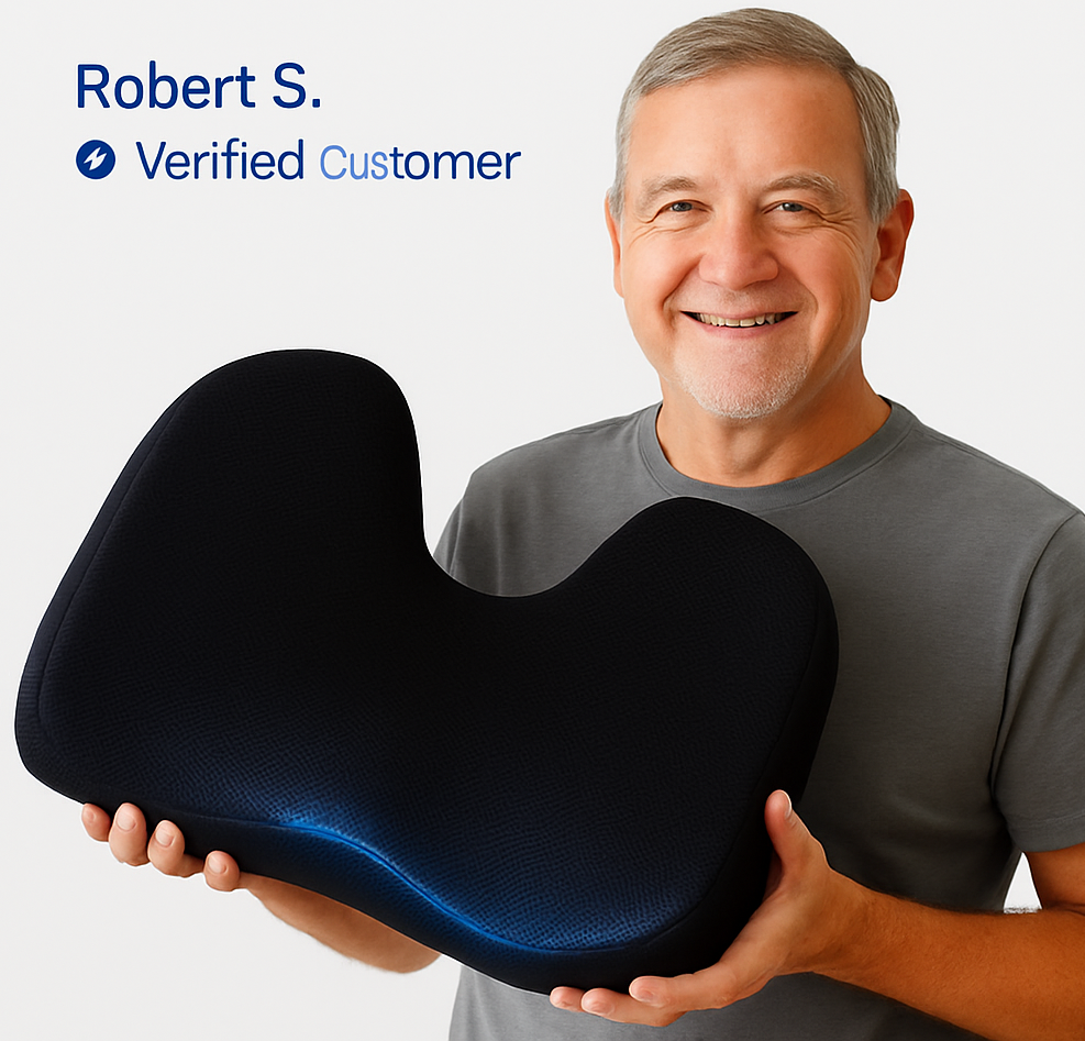 "My lower back would stiffen up after just 20 minutes in my armchair. I stopped enjoying my morning routine — even reading the paper felt like a chore. This cushion brought relief I didn’t expect. I sit longer, feel supported, and most importantly, I’m not cranky from the constant pain anymore. I even take it to church with me. It’s my new daily essential."