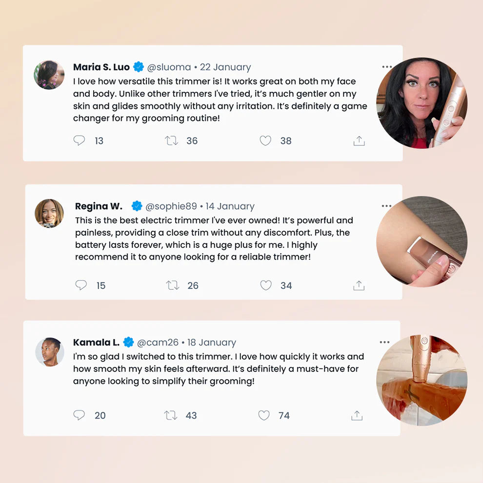 Delivers a quick and efficient trum, removing hair painlessly and effectively for a comfortable experience