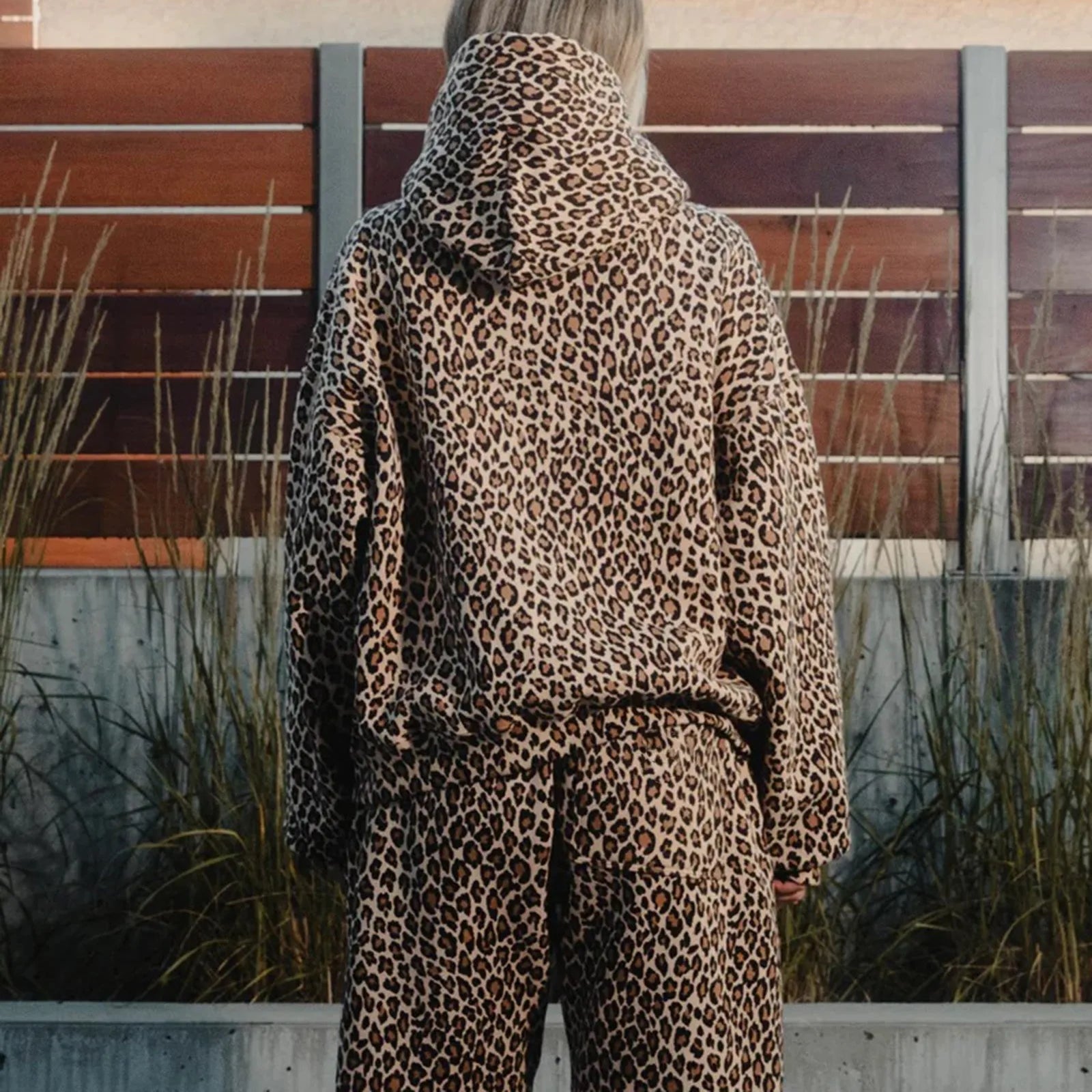 Slip into this leopard hoodie and feel the power of untamed elegance – it's not just a hoodie, it's your secret to turning heads and stealing hearts.