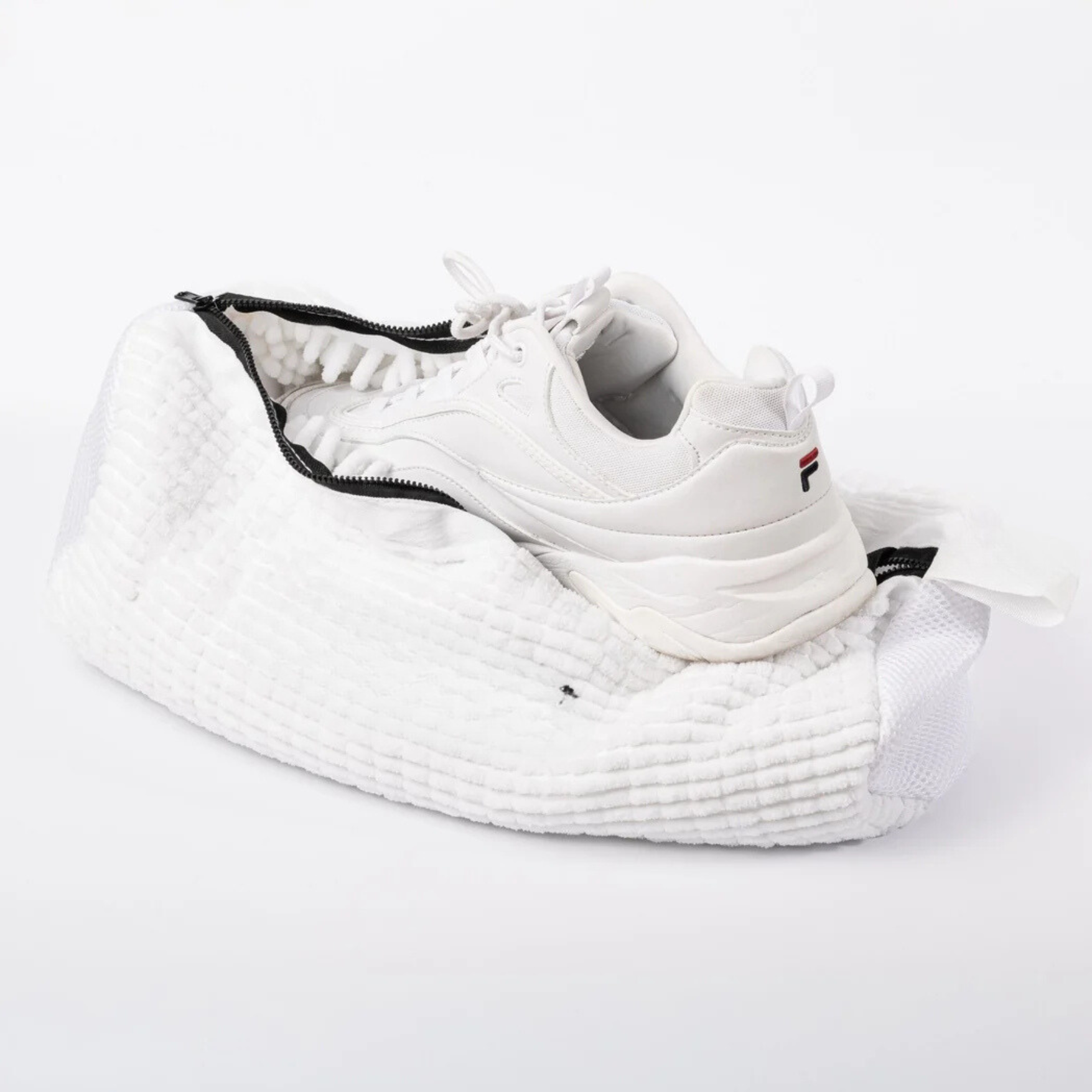 Avoid water damage, deformation, or colour fading with the Fresh Step™ shoe cleaner bag!