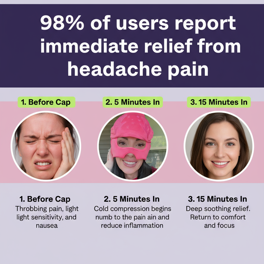 🎯 360° Full Head Coverage Forehead, temples, crown, back of neck - all covered. Not just a cold pack on your forehead. This is complete sensory relief that stops migraines at the source.