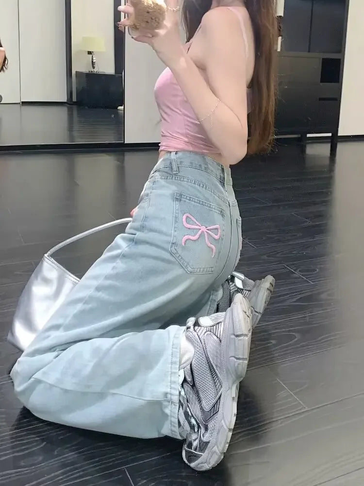 Make a statement with our Wide Leg Jeans with Pink Bow Embroidery, the perfect blend of vintage charm and modern style. Featuring a flattering high-waisted fit and a trendy wide-leg silhouette, these jeans offer both comfort and effortless elegance. Delicate pink bow embroidery adds a playful, feminine touch, making them a standout piece in any wardrobe. Pair them with a cropped top or an oversized sweater for a chic,fashion-forward look.